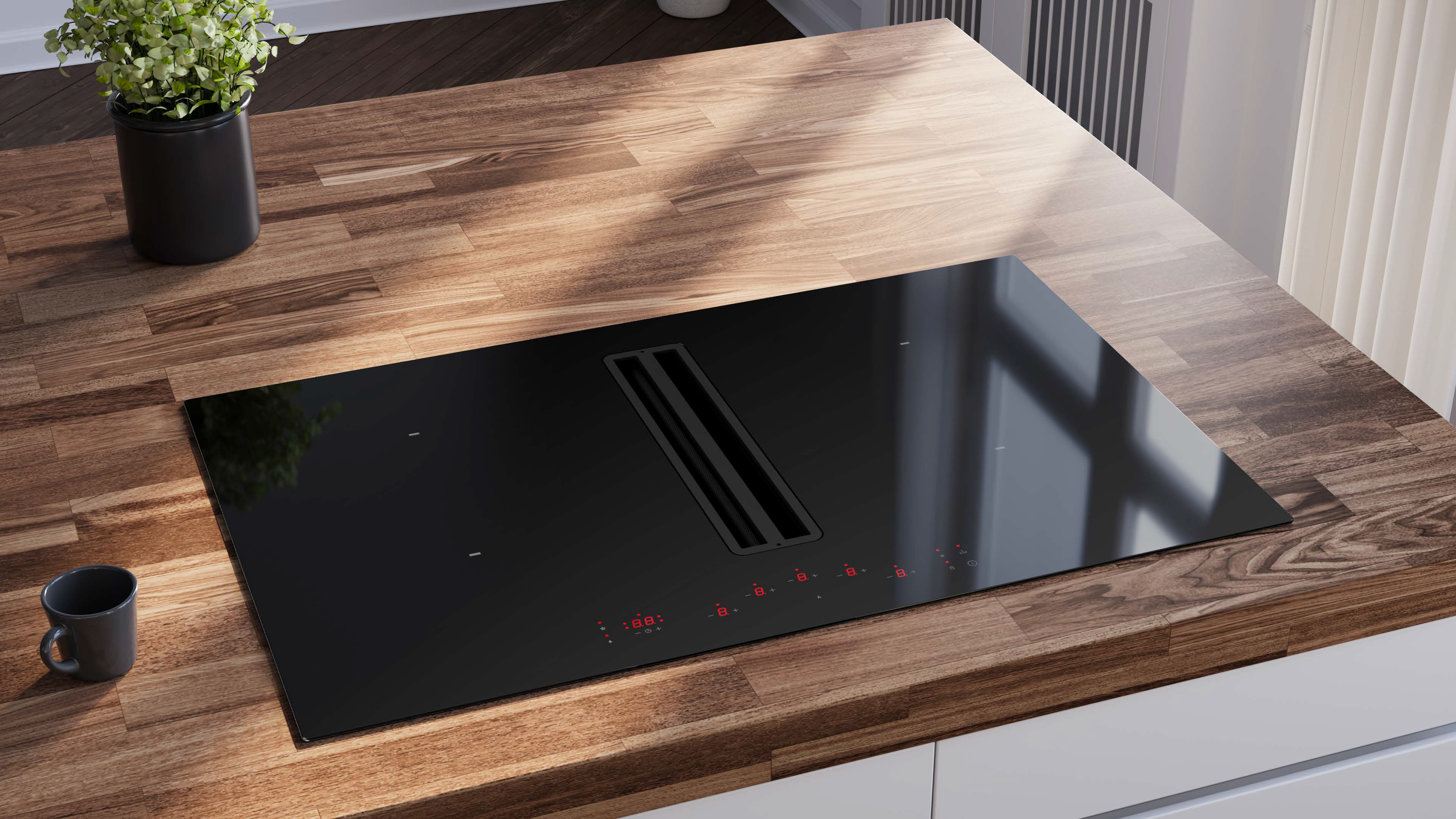 Due for launch in the coming weeks, the Onyx – where modern design meets powerful performance. Its striking black glass surface brings a premium, minimalist aesthetic to any kitchen, while integrated touch controls keep everything sleek, simple, and effortless. Cook with total flexibility thanks to four cooking zones, including two bridge zones perfect for griddles. Beneath the surface, a high‑efficiency brushless motor extracts steam and odours directly from the hob, supported by a charcoal filter for easy recirculation installation. Smart features as standard include grease‑filter alert, child lock key, and precision timer.